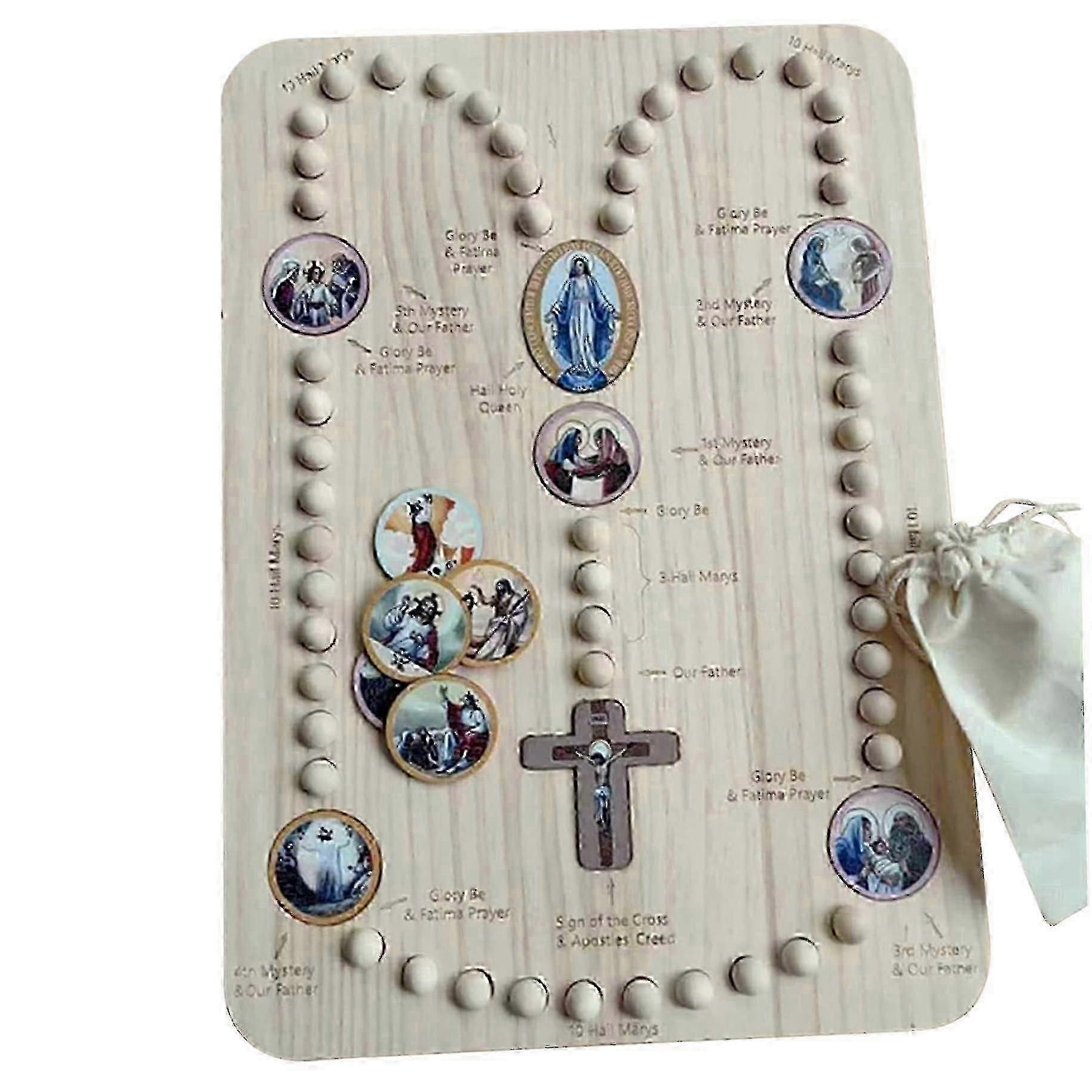Wooden Rosary Board Set with 22 Mystery Cards and 54 Beads for Children's Religious Education