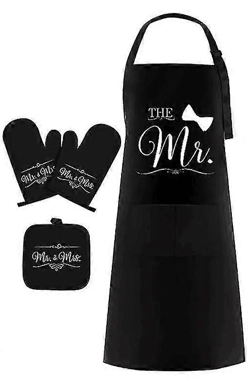 Mr. & Mrs. Couple Aprons Set - Wedding Gift, White & Black