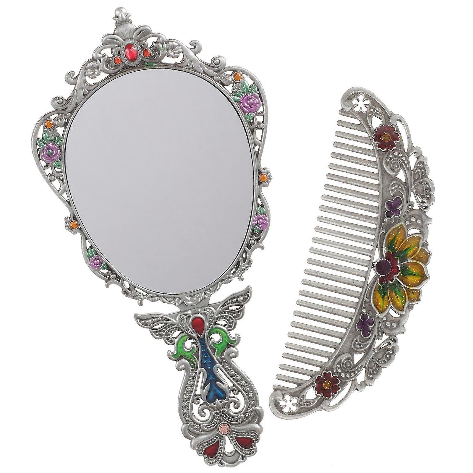 Vintage Metal Makeup Mirror Set For Women With Handheld Folding Design Assorted Color Durable Construction 1 Set