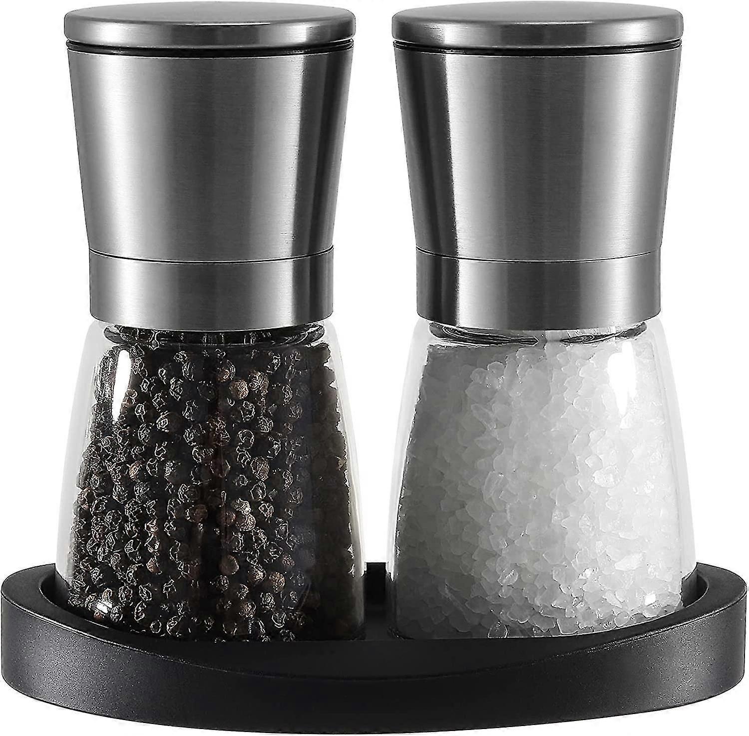 Salt and Pepper Grinder Mill Set,Adjustable Ceramic Coarseness Core Stainless Steel Pepper Salt Grinders Mill Table Salt Shaker with Rubber Stand for