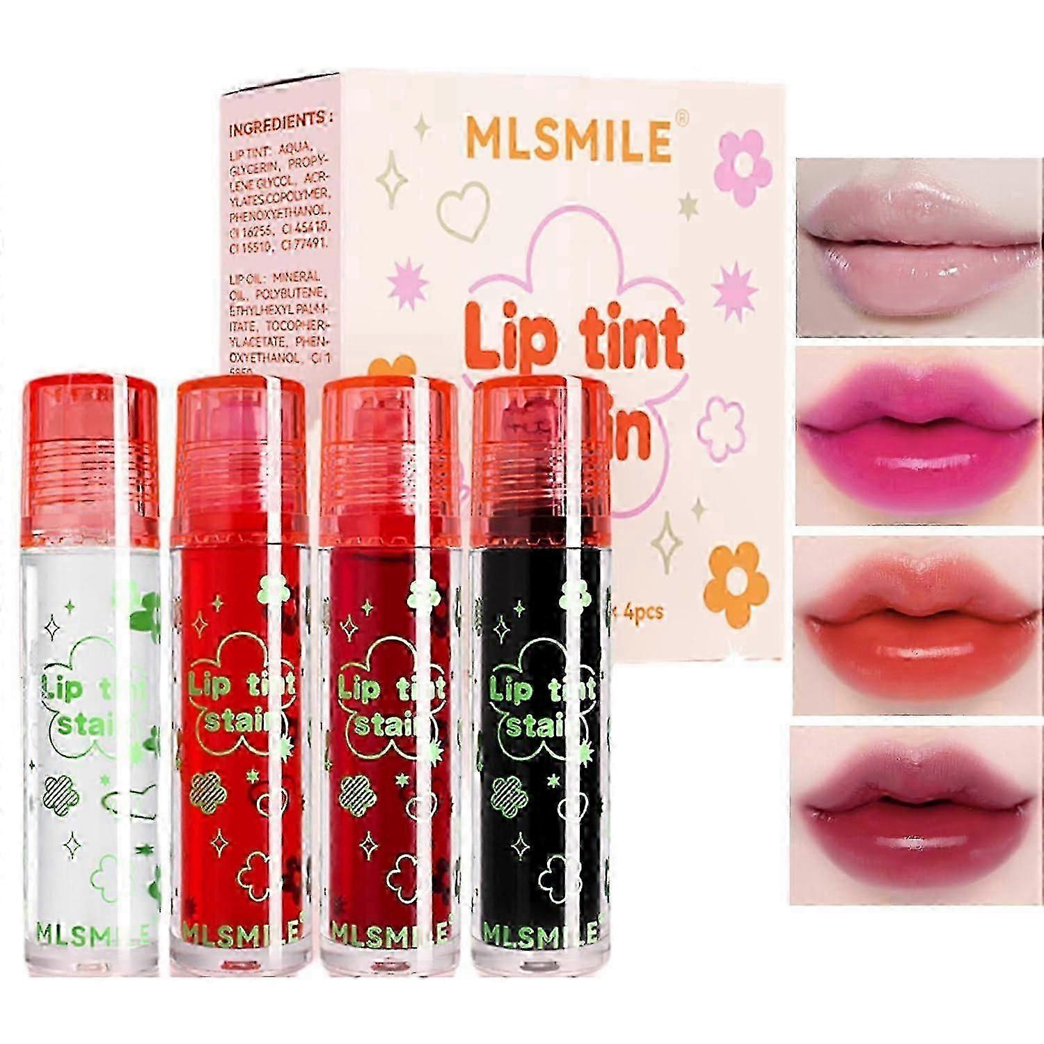 4 Colors Lip Gloss Set, Roll on Lip Gloss, Lip Tint Stain, Lip Tint Blush for Lip & Cheek, Mini Liquid Lipstick Lip Oil, Non-Sticky Lip Oil