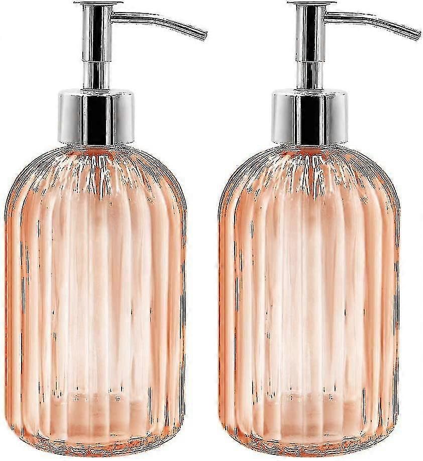 Set Of 2 Glass Soap Dispenser. 400 Ml Liquid Soap Dispensers With Pump
