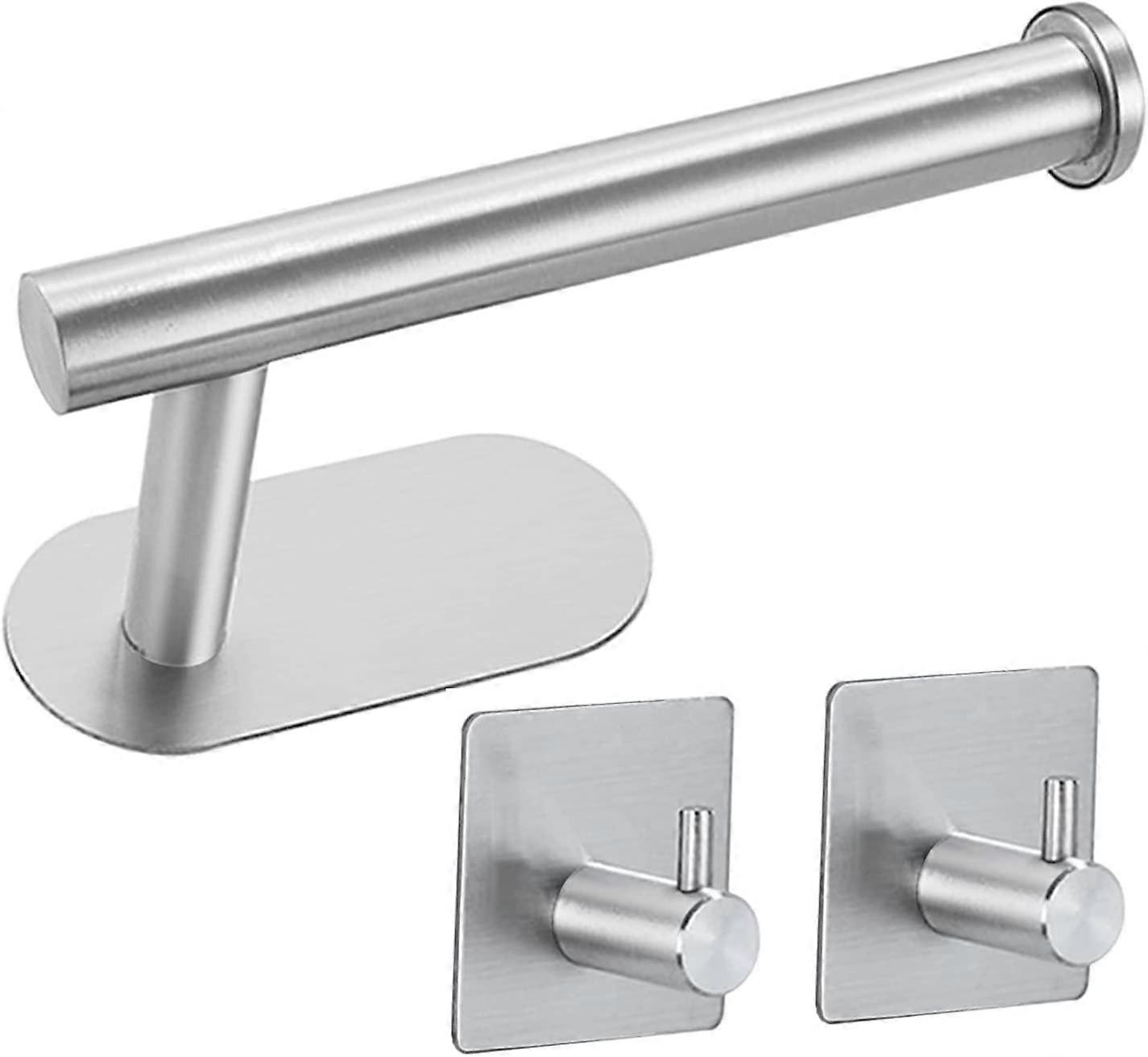 Set of 3 Toilet Paper Towel Holders - No Drilling - Stainless Steel - Ideal - Silver