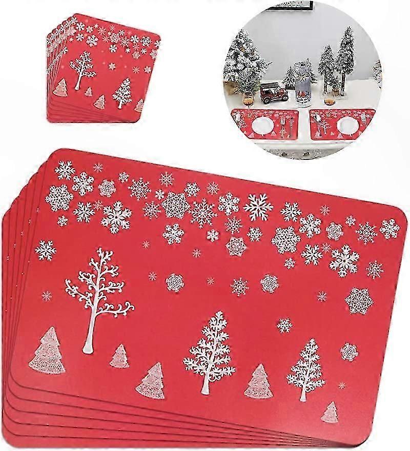 Set of 6 Table Mats and 6 Cup Mats with Festive Elk Design for Holiday Dining Decor, Grey