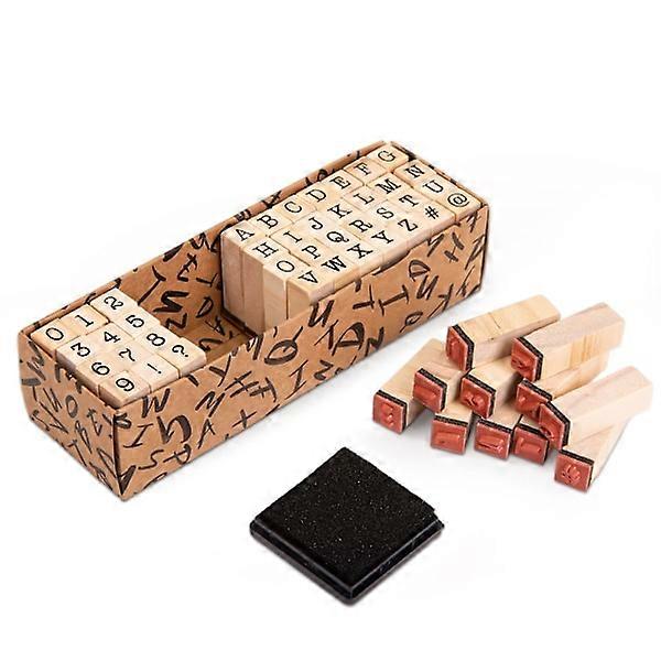 Alphabet Stamps, 40 Pcs Wooden Rubber Stamps - Set with Uppercase Letters, Numbers and Symbols - Mini Letter Stamps