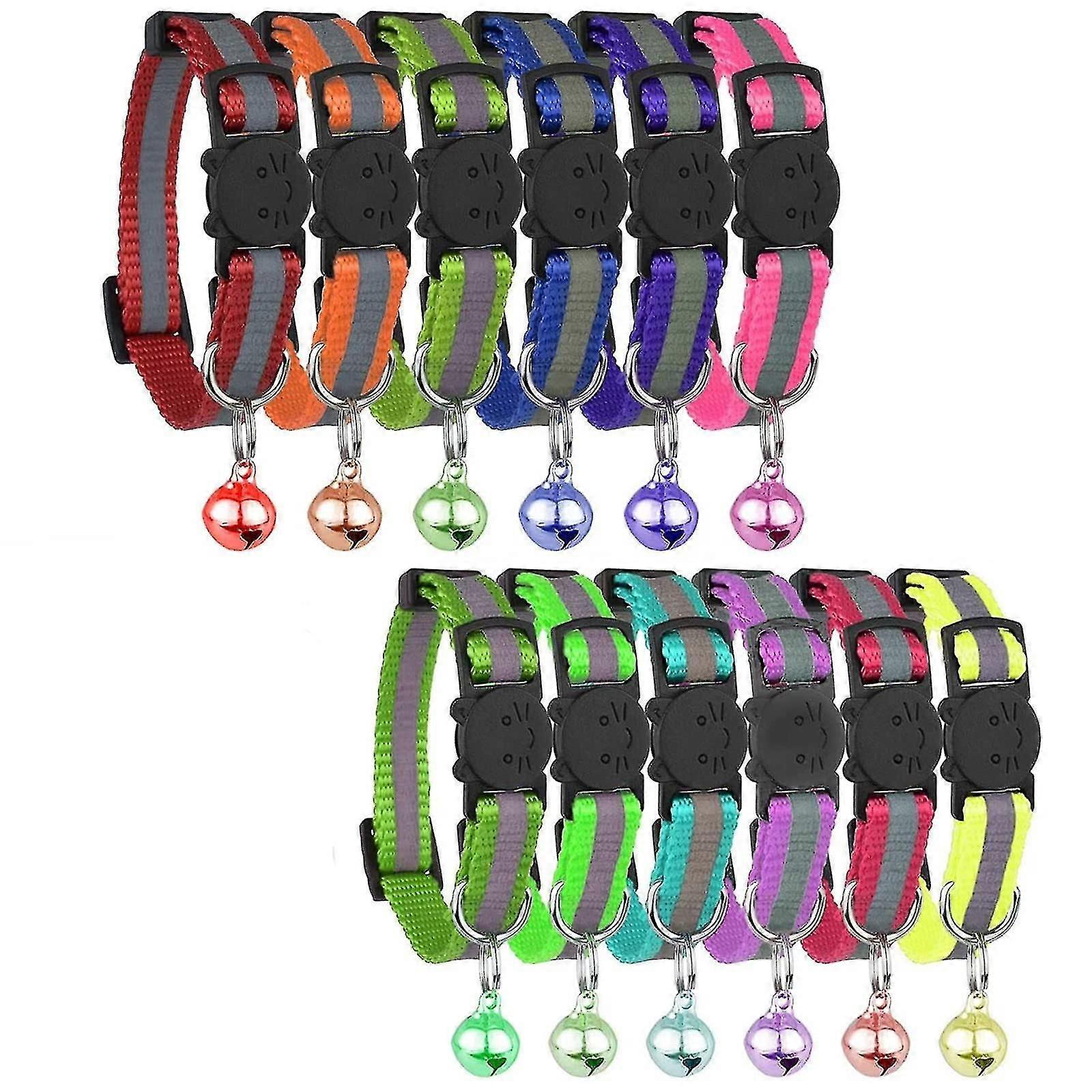 Cat Collar Cat Breakaway Collars Set 12 Pcs With Bell Reflective Strap Safety Buckle, Adjustable 8-12" (12 Color)
