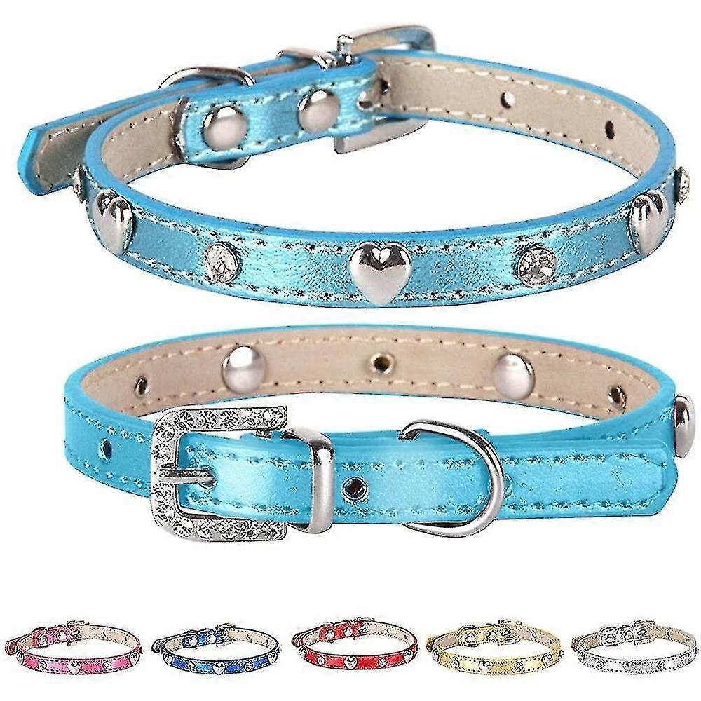 Cat Collar With Rhinestones, Pu Leather Kitty Collar With Rhinestones Buckle And