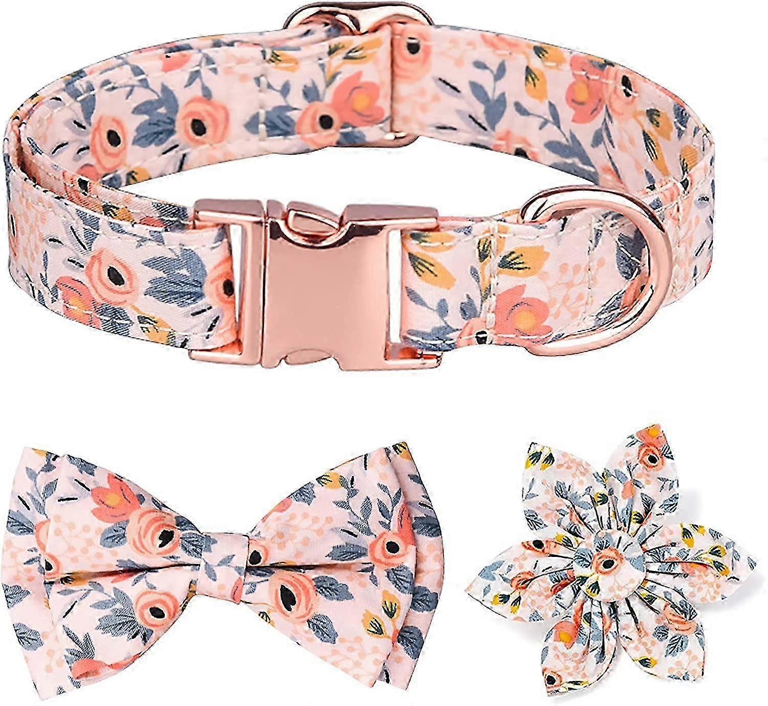 Cat Dog Collar with Detachable Bow Tie and Floral Design,with Rose Gold Buckle,Medium Large Dogs and Cats in 3 Different Styles(L)