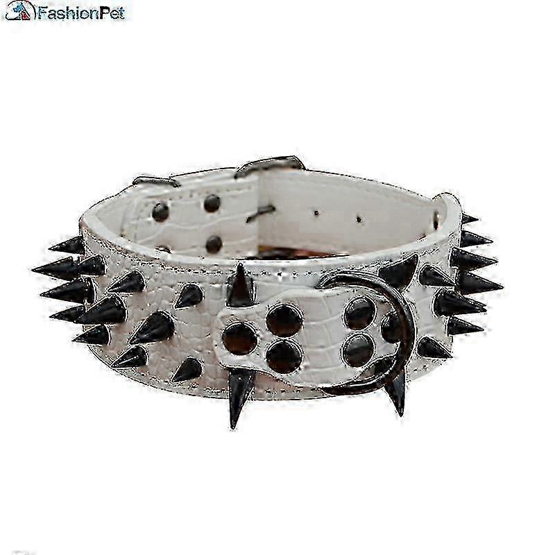 High Quality Width PU Leather Big Dog Collar with Black Sharp Spikes Studded for Large Dog Pitbull Mastiff KI
