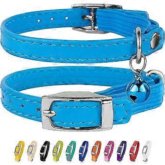 Leather Cat Collar, Cat Safety Collar with Elastic Strap, Kitten Collar for Cat with Bell Black Blue Red Orange