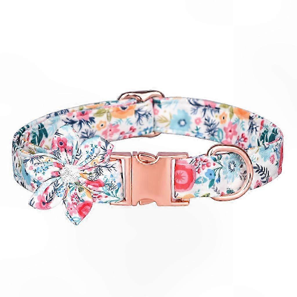 Girl Dog Collar with Removable Flower Adjustable Floral Pattern Dogs Collar Soft Puppy Collar with Safety Metal Buckle L