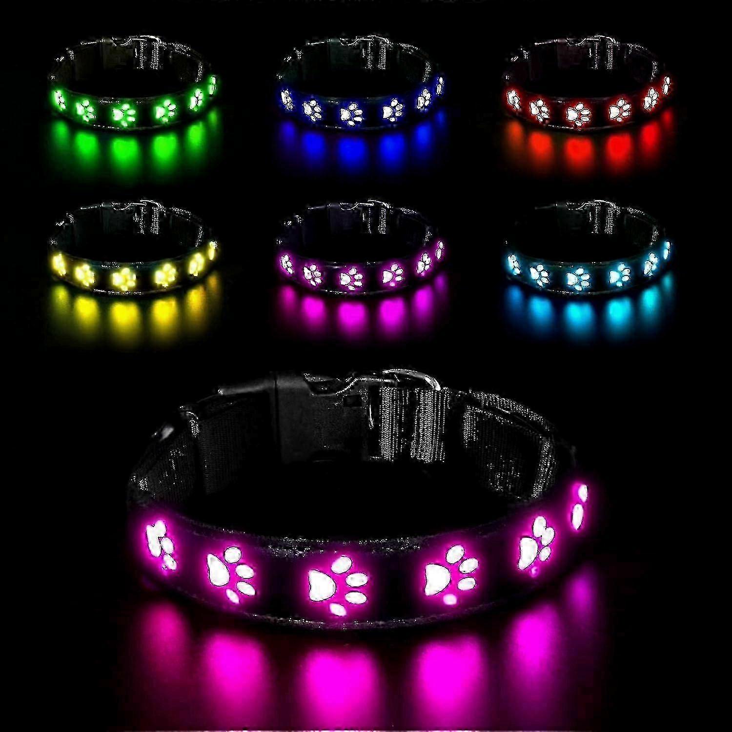 LED Luminous Collar for Dogs, Rechargeable and Waterproof Dog Collar Light, Adjustable Collar with 7 Lighting Modes (Colorful-S)