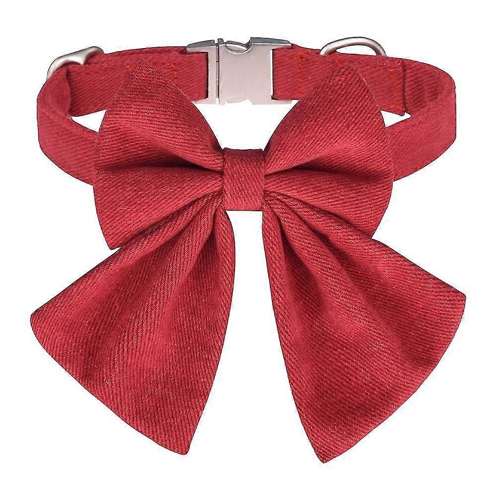 Dog Collar With Bow-solid Colors Sailor Bow Tie Adjustable Collar For Small Medium Large Dog With Golden Metal Buckle-red
