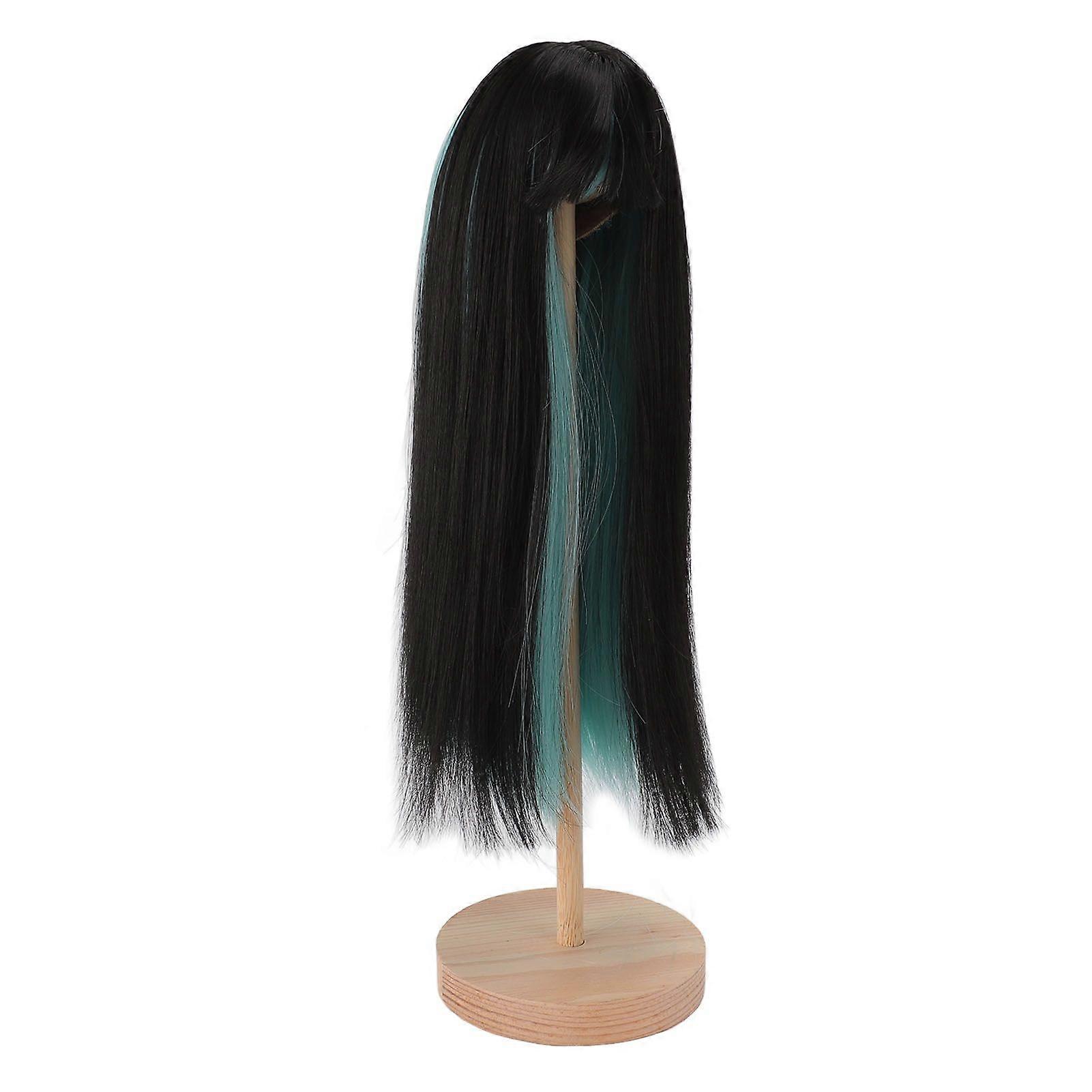 Long Straight Doll Wig Two Color DIY Doll Hair Wig High Temperature Fiber Doll Replacement Wig for 7.38.3in Head Circumference Doll Black Green