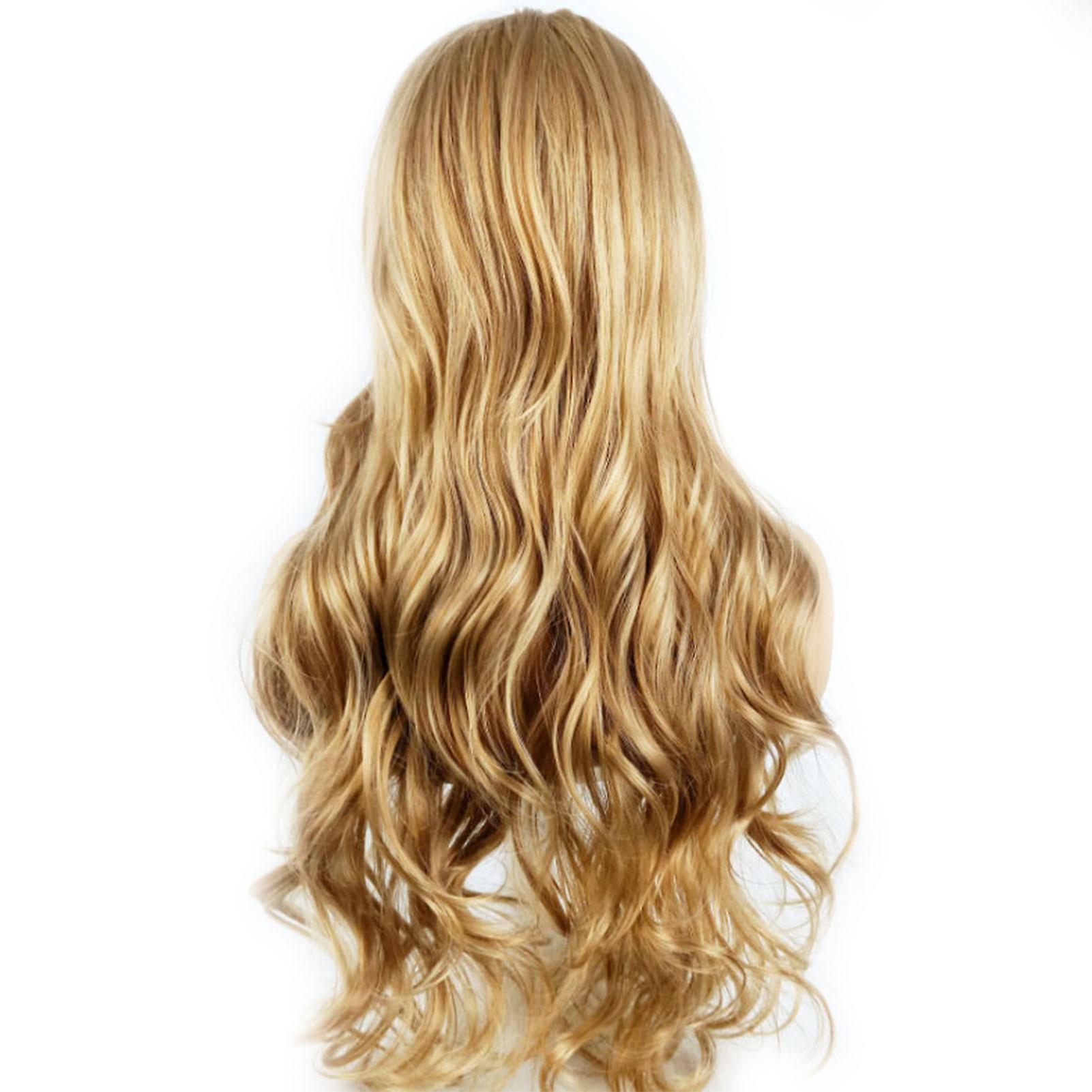Long Curly Wig Women Halloween Party Cosplay Costume Middle Parting Matte Blonde Wavy Synthetic Wig