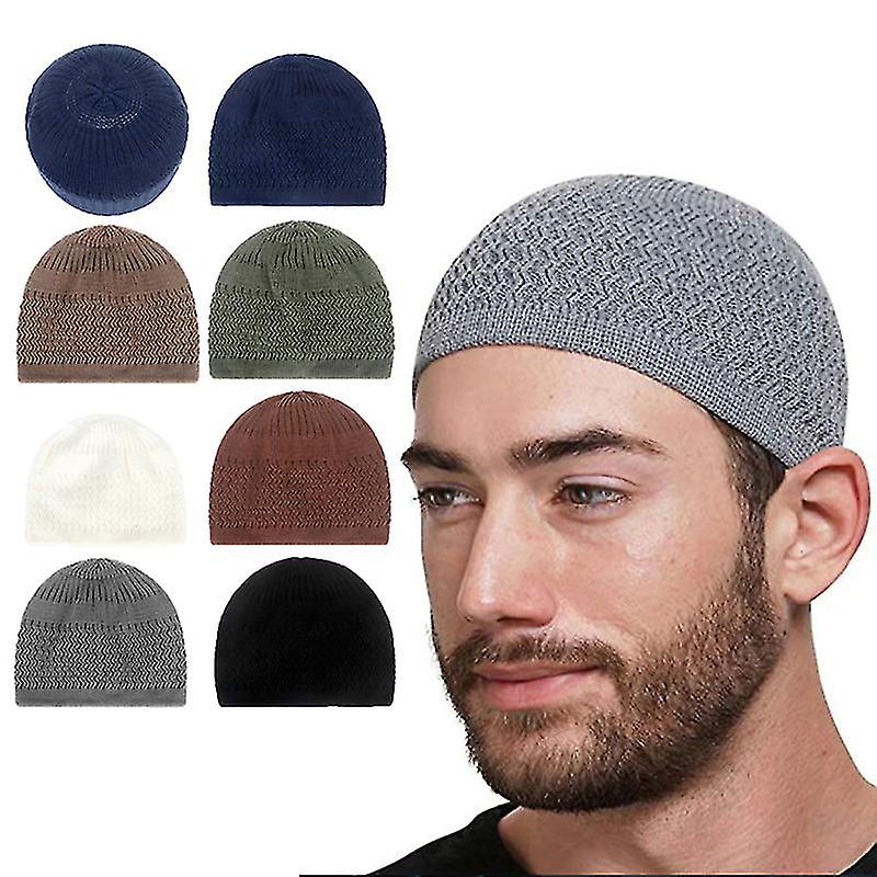 Casual Knitted Muslim Men Prayer Hats Winter Warm Male Beanies Cap Islamic Ramadan Jewish Kippah Homme Hat Men S Wrap Head Cap