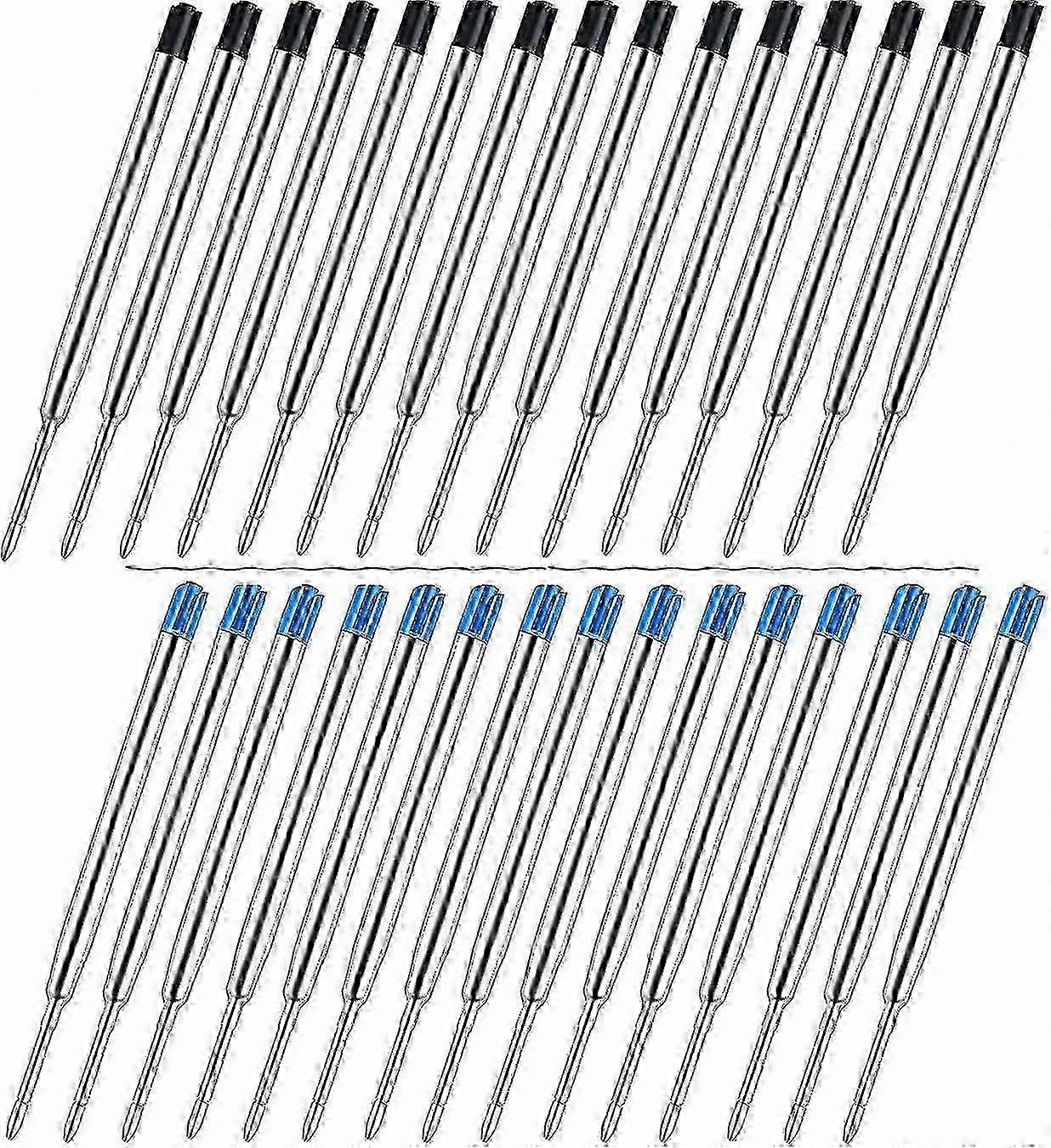 Medium Point Ballpoint Pen Refills - 30 Pack (15 Black, 15 Blue) Metal Ink Replacement Cartridges for Various Pens