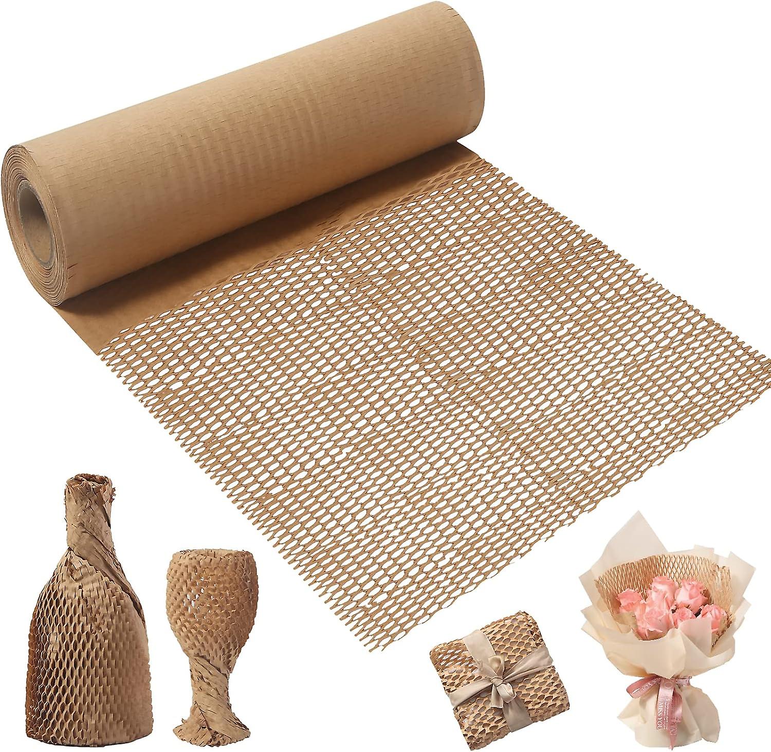 Brown Honeycomb Paper Packaging, 30 cm x 30 m Biodegradable Paper Bubble Wrap, Eco Friendly Brown Wrapping Paper for Moving and Wrapping