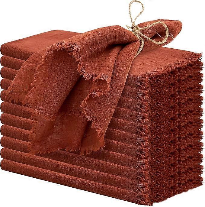 Pack of 10 handmade 40 x 40 cm delicate cotton fringed reusable soft rustic cotton dinner everyday use (terracotta)