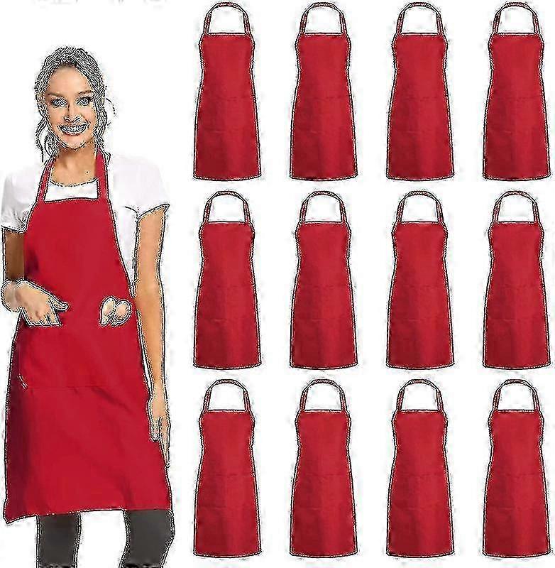 12 Pack Plain Bib Aprons With 2 Pockets - Black Unisex Commercial Apron Bulk