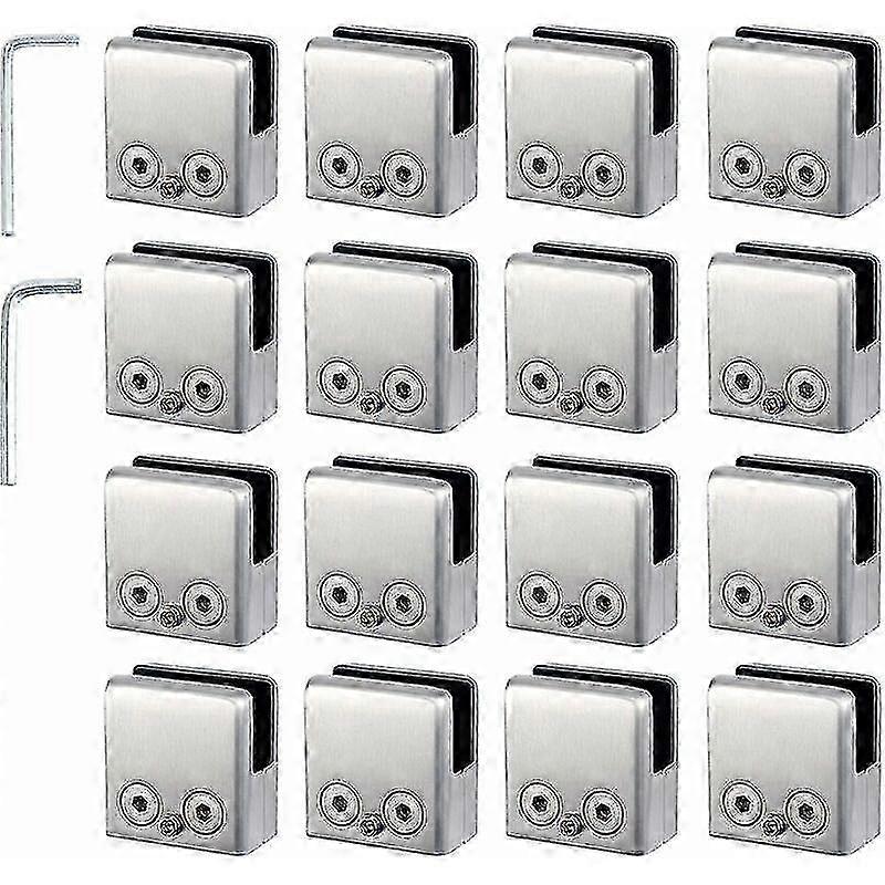 16 Pack 304 Stainless Steel Glass Clamps -square Glass Clamp -adjustable Flat Glass Clamp For Stair Balustrade -polished Handrail - (8-10mm Square)