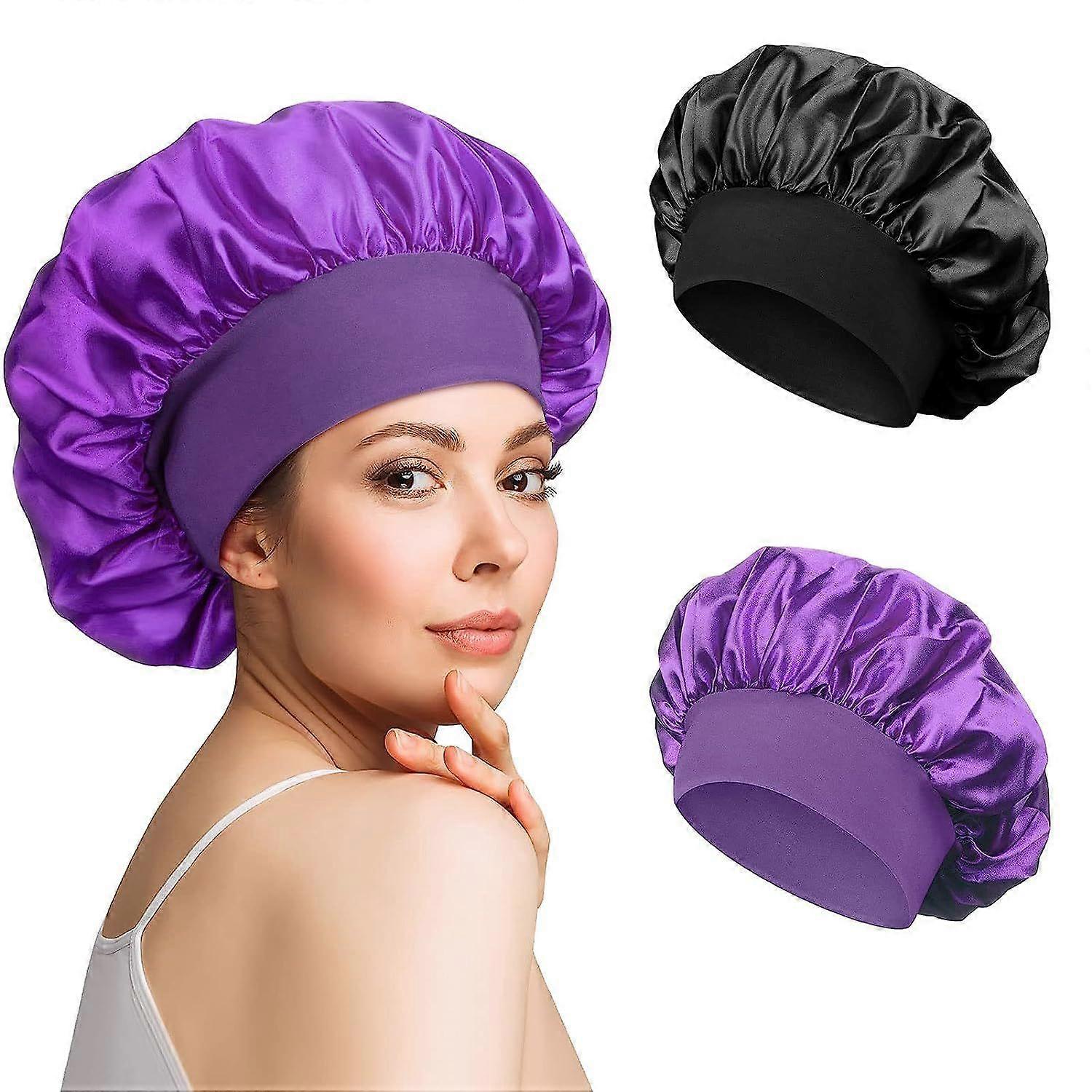 Pack of 2 Satin Bonnet Night Sleep Hat Adjustable Sleeping Cap Headwear Soft Head Cover Sleeping Cap Silk with Elastic Band for Women and Girls