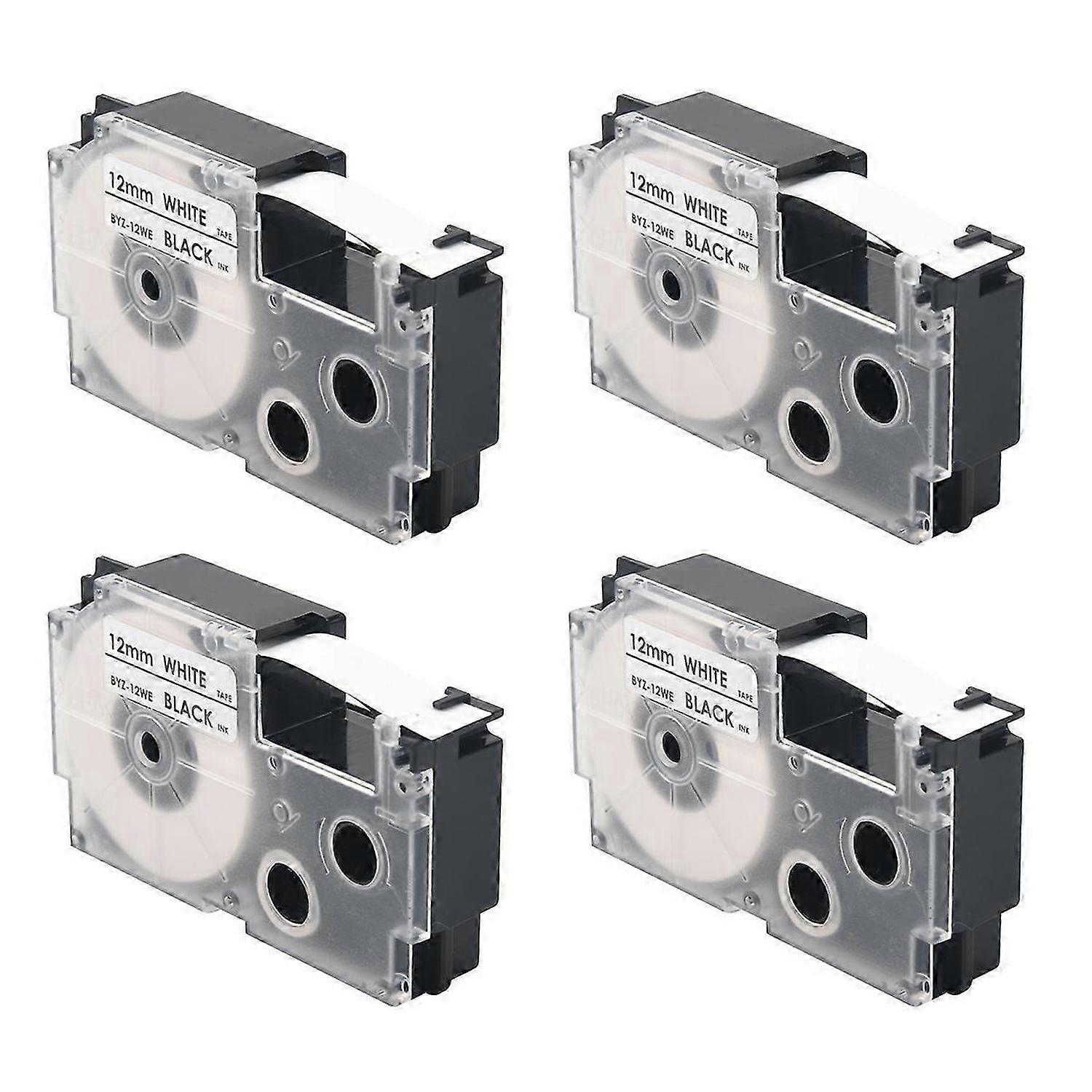 4 Pack 12mm Black on White Label Tape Label Maker Compatible with KL1500 KL2000 KL7000 KL7200 -100 K