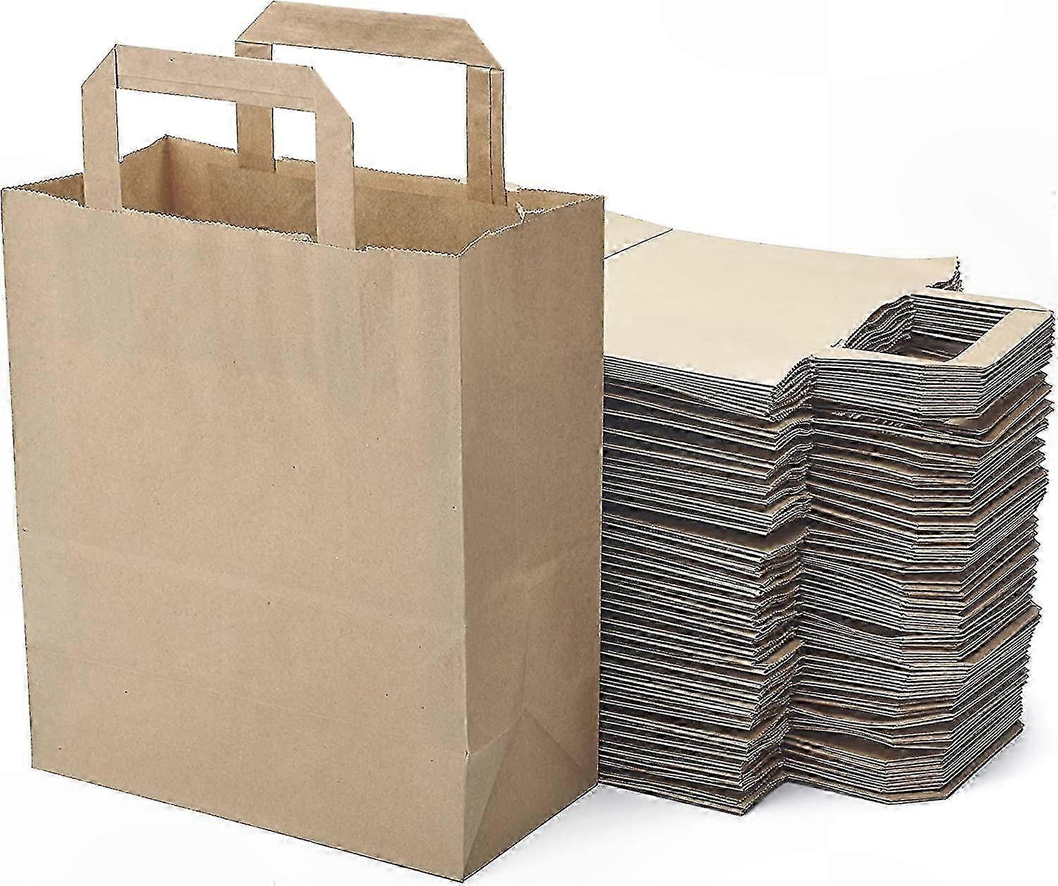 Pack of 50 Brown Kraft Paper Bags with Flat Handles - 21x11x25 cm - Ideal for Gifts, Shopping, Parties, and Special Ocns
