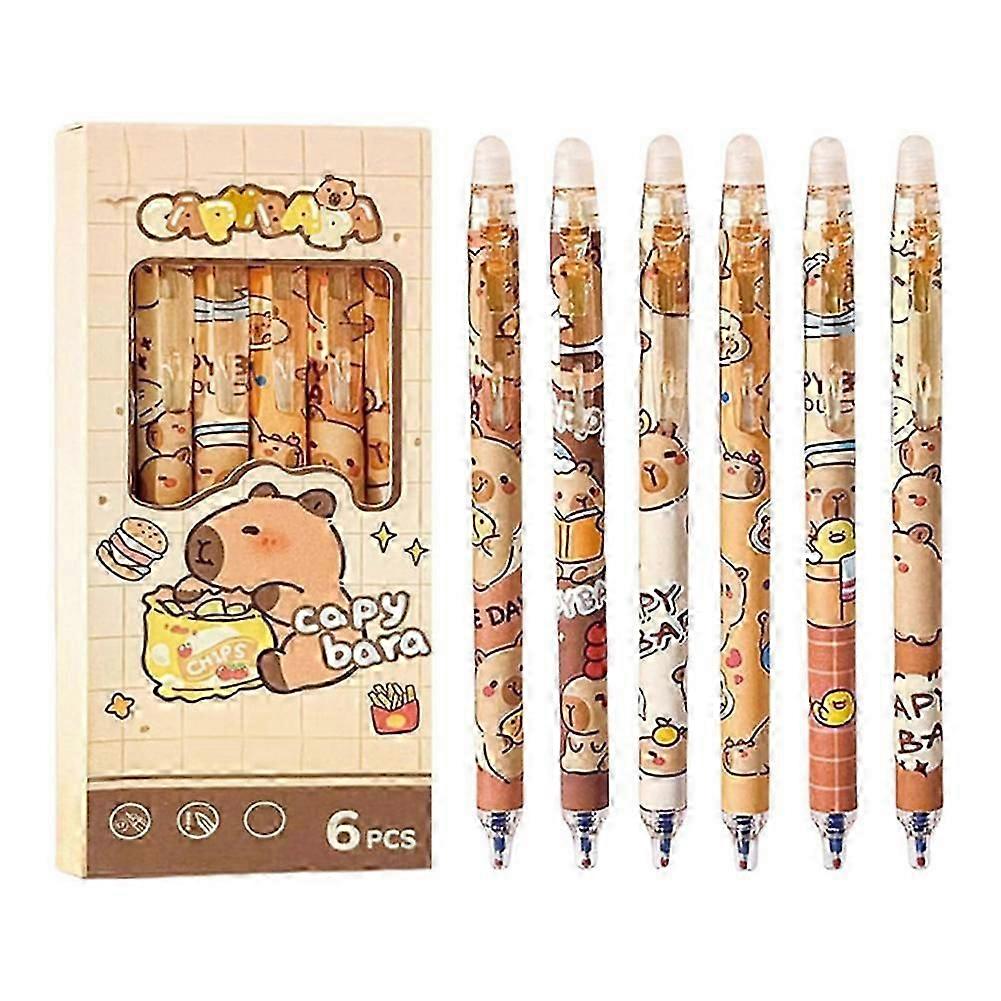 Pack of 6 Cute Erasable Retractable Pens, Erasable Gel Ink Pens Cartoon Capybara Pens 0.5 mm Fine Tip Blue Ink