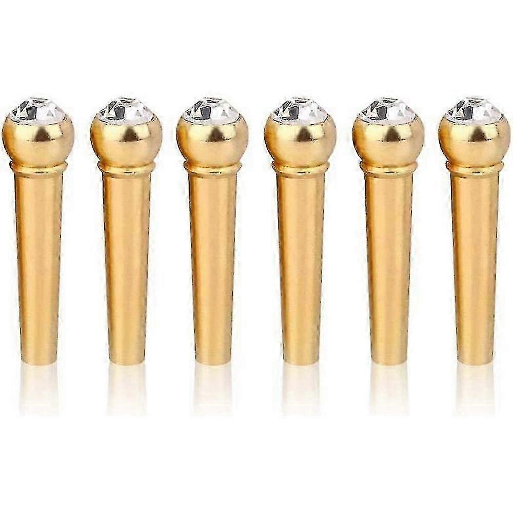 Pack of 6 Guitar Bridge Pin, Brass Bridge Peg Nail with Crystal Glass Dot for Acoustic Guitar(white)