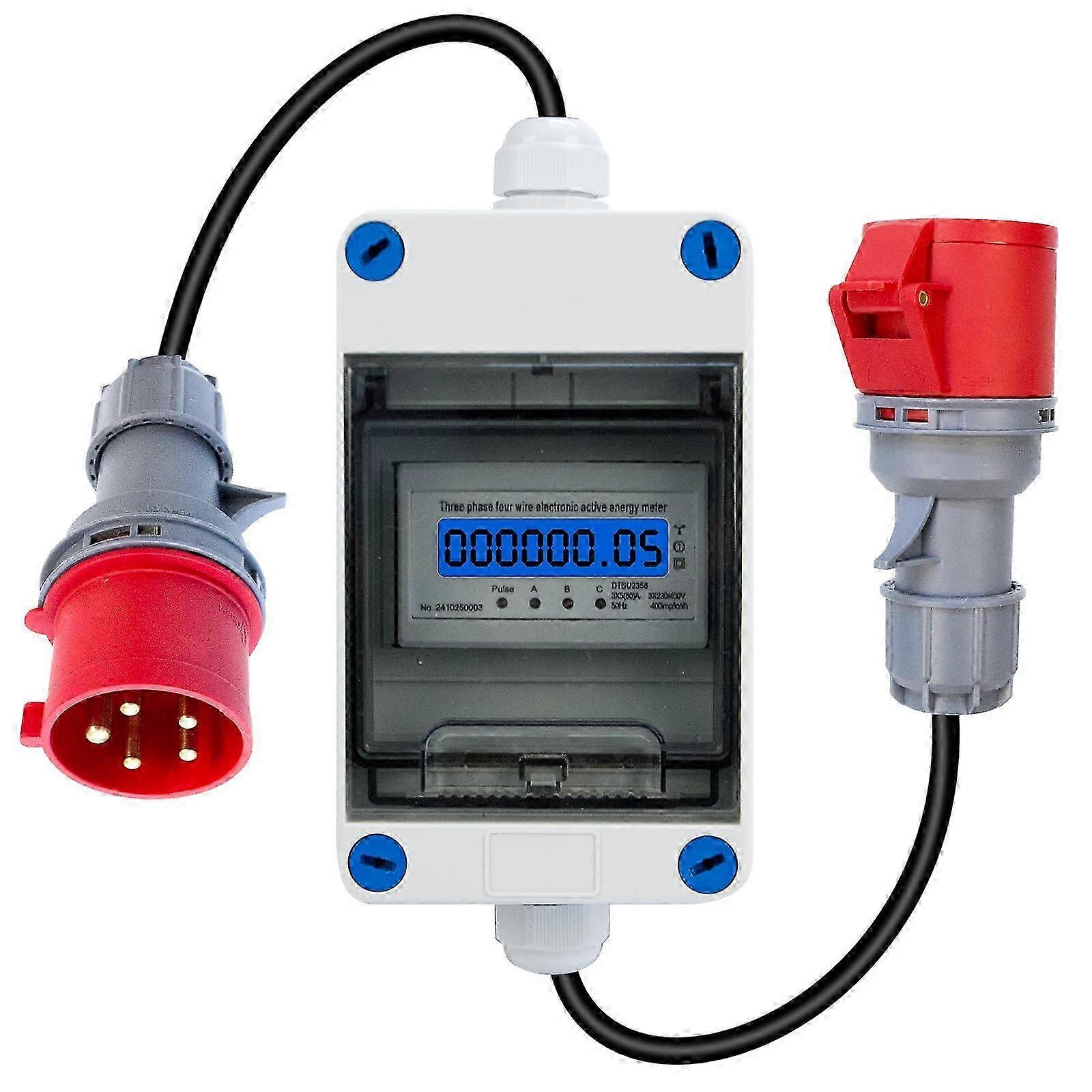 Mobile Electricity Meter, 3 Phase 32A 400V with 5G 2.5 CEE Plug and Coupling Ref: 6709