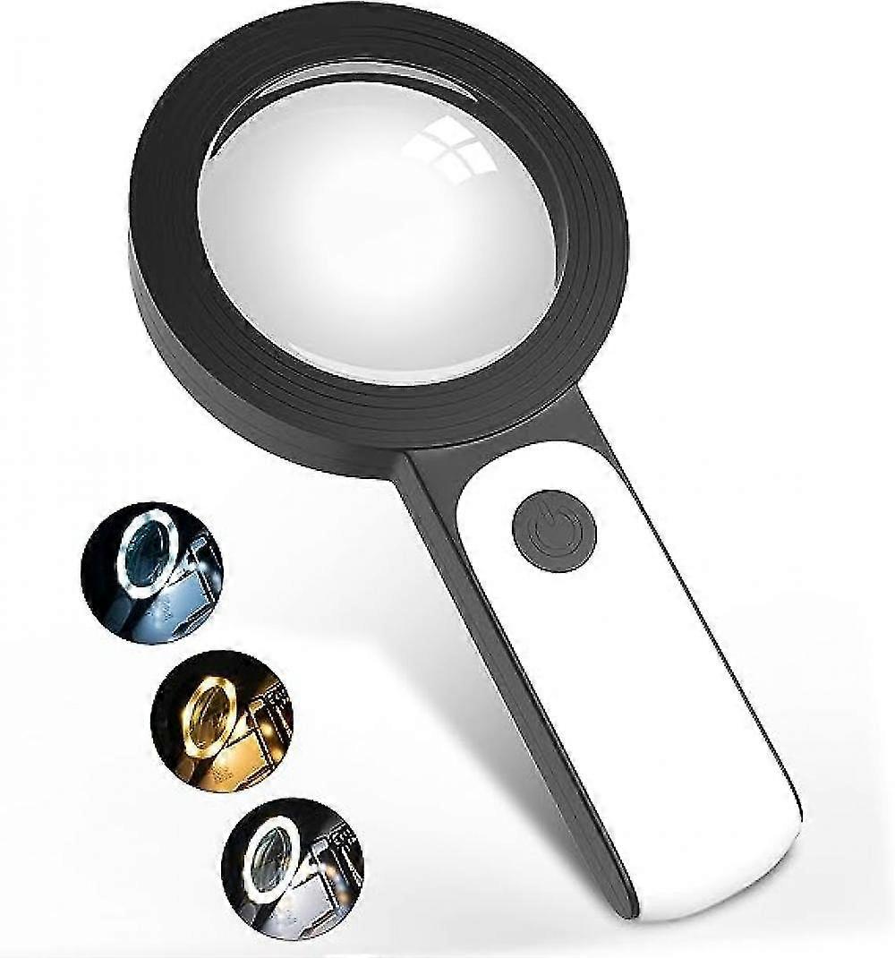 Mike Magnifying Glass With 18 Led Lights, 30x Handheld Large Magnifying Glass With 3 Modes, Illuminated Magnifier Glass For Seniors Read, Coins