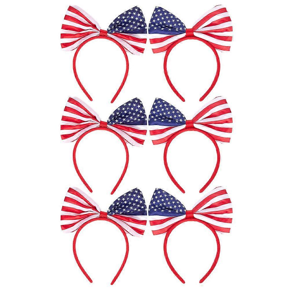 Patriotic Party Headbands 6Pcs Bowknot Headwear Independence Day Costume Accessory Assorted Color For Adults Kids