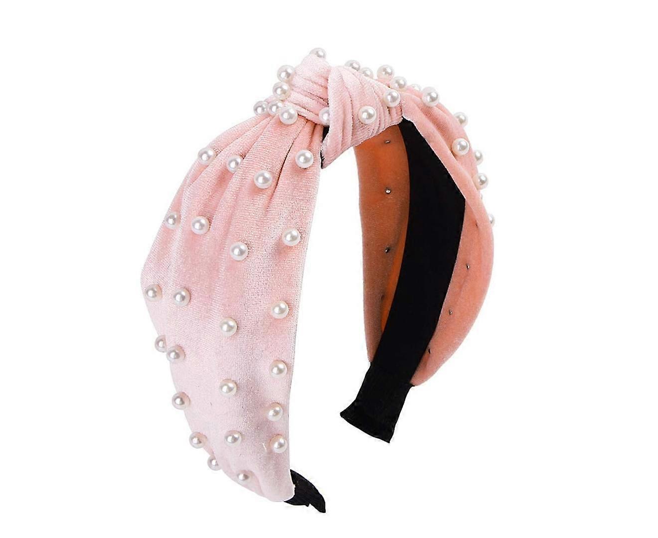 Headbands For Women Pearl Headbands - 1Pcs Twisted Faux Pearl Velvet Headband Elegant Bling Hair Clip-Pink