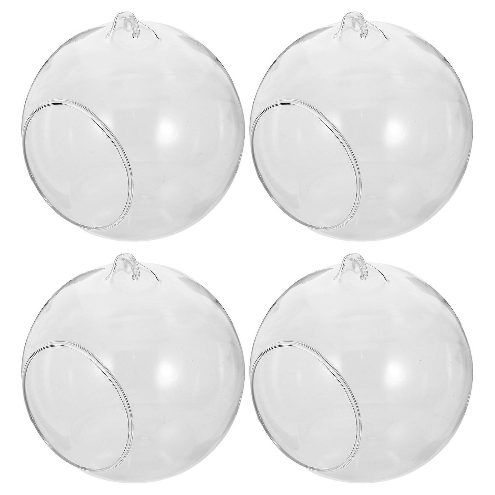 Succulent Hanging Vase Transparent Glass Ball Shape Flower Plants Terrarium Flat Base Container Indoor and Outdoor Areas 4Pcs