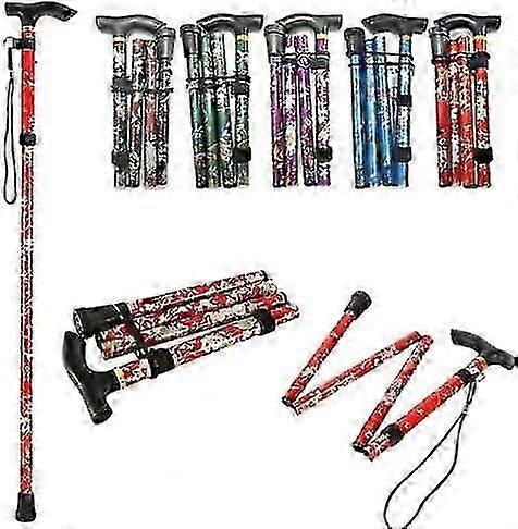 Folding Walking Stick Adjustable Aluminium Floral Walking Cane For Hiking Camping Durable Mobility