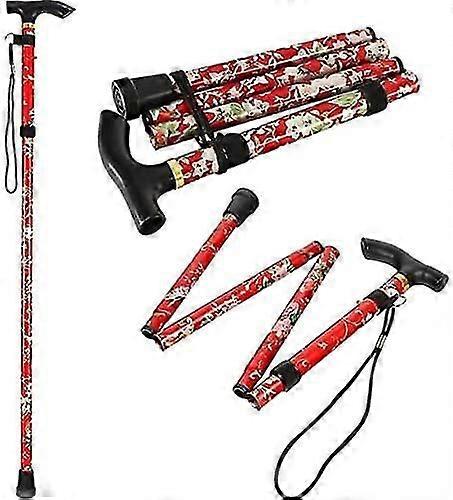 Folding Walking Stick Adjustable Aluminium Floral Walking Cane For Hiking Camping Durable Mobility Aid