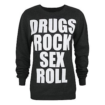 New Era Womens Sweatshirt Black Drugs, Rock, Sex, Roll Text