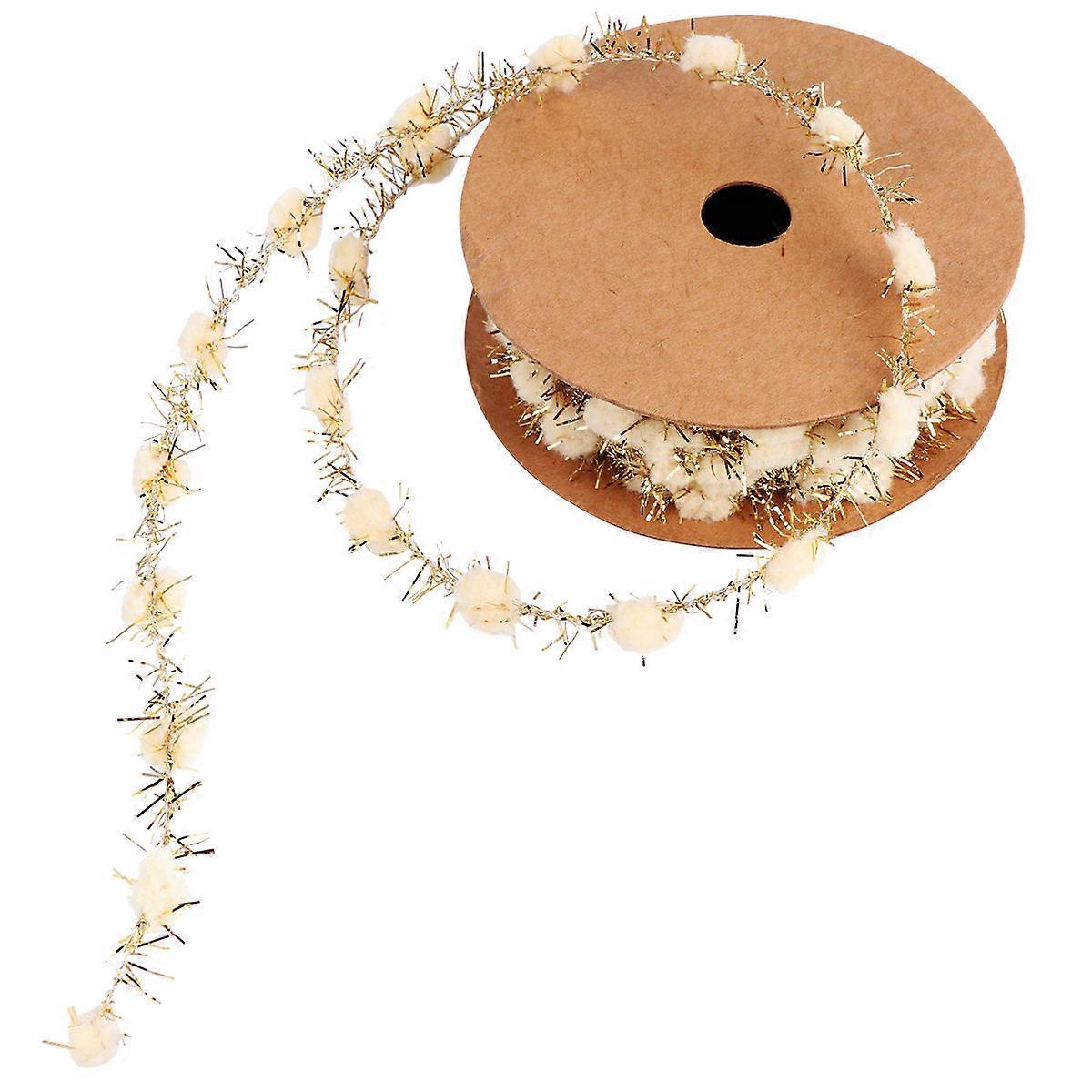 Holiday Ribbon Trim Glitter Pom Poms Christmas Tree Decoration Diy Art Crafts 3M Length 1Pcs