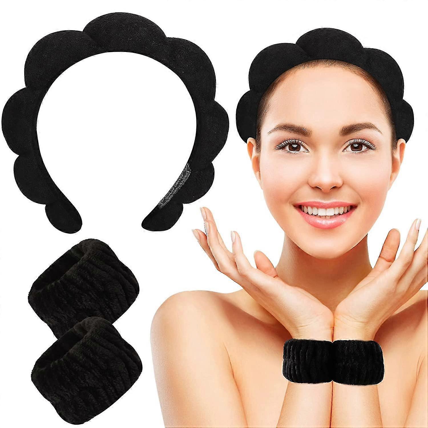 Makeup Headband For Washing Face, Terry Cloth Spa Headband, Skincare Headbands, Spa Headband And Wristband Set