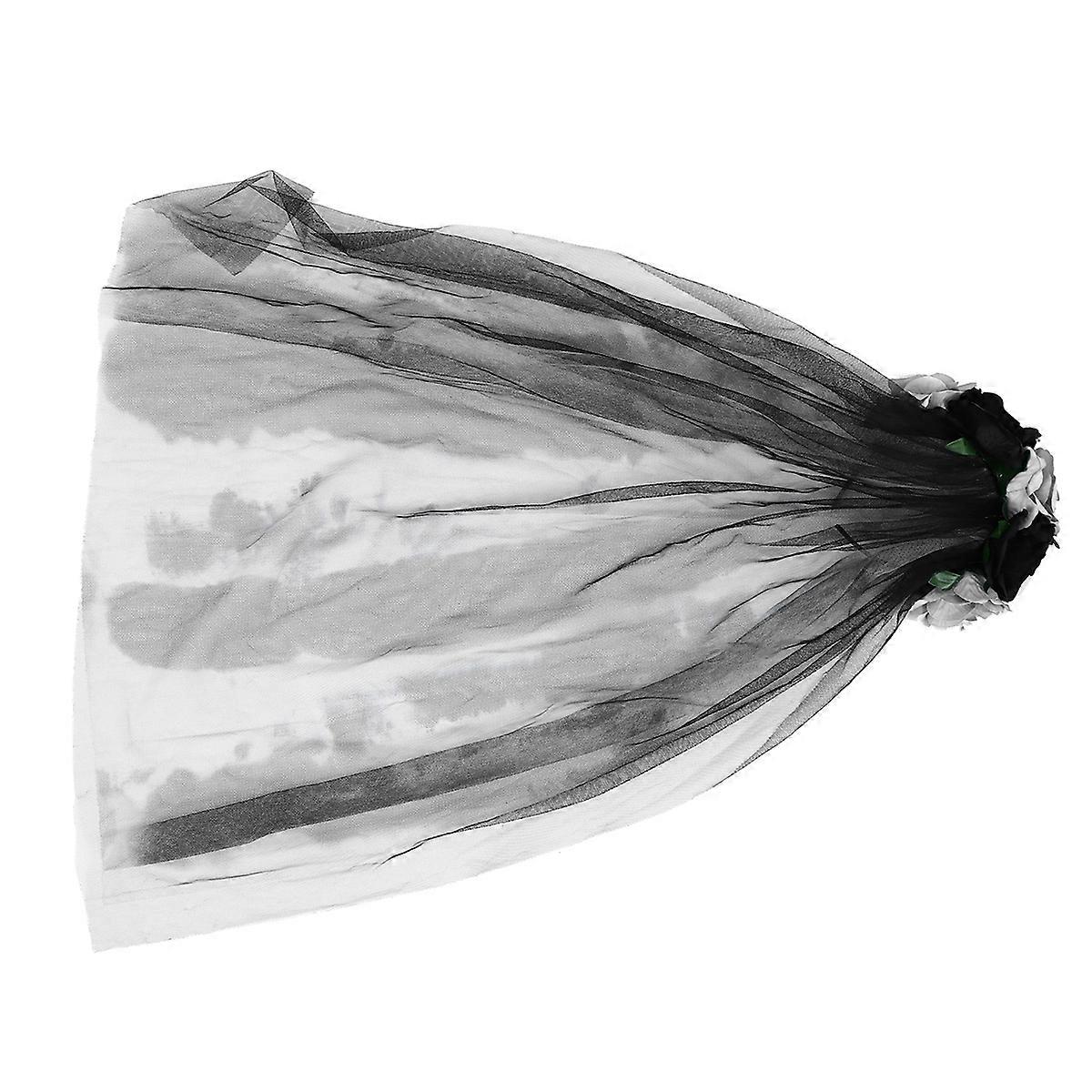 Halloween Floral Rose Headband with Long Black Veil – Flexible Lace Costume Crown for Adults, Gothic Party Accessory for Cosplay and Dress Up