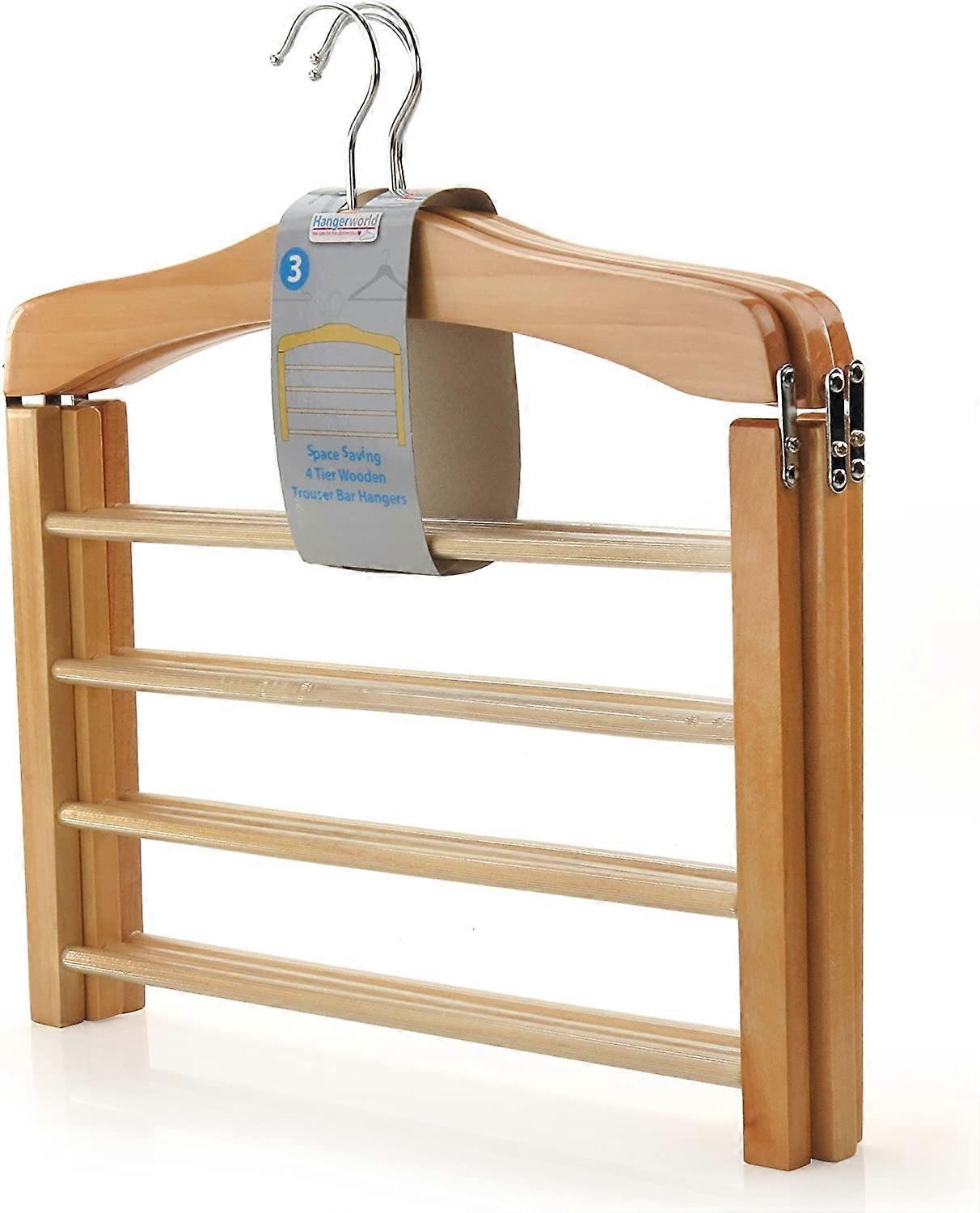 wooden trouser hangers With 4 non-slip trouser bars 38cm Natural wooden hangers