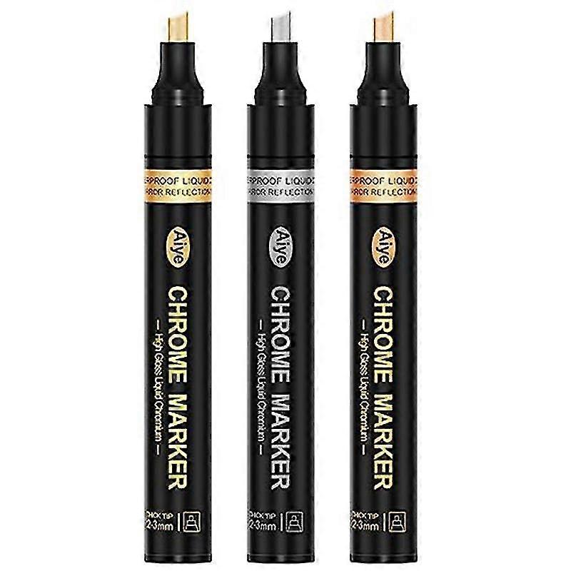 Liquid Mirror Chrome Markers, 3 Colors Permanent Metallic Markers, 2-3mm Larger Application Area, H