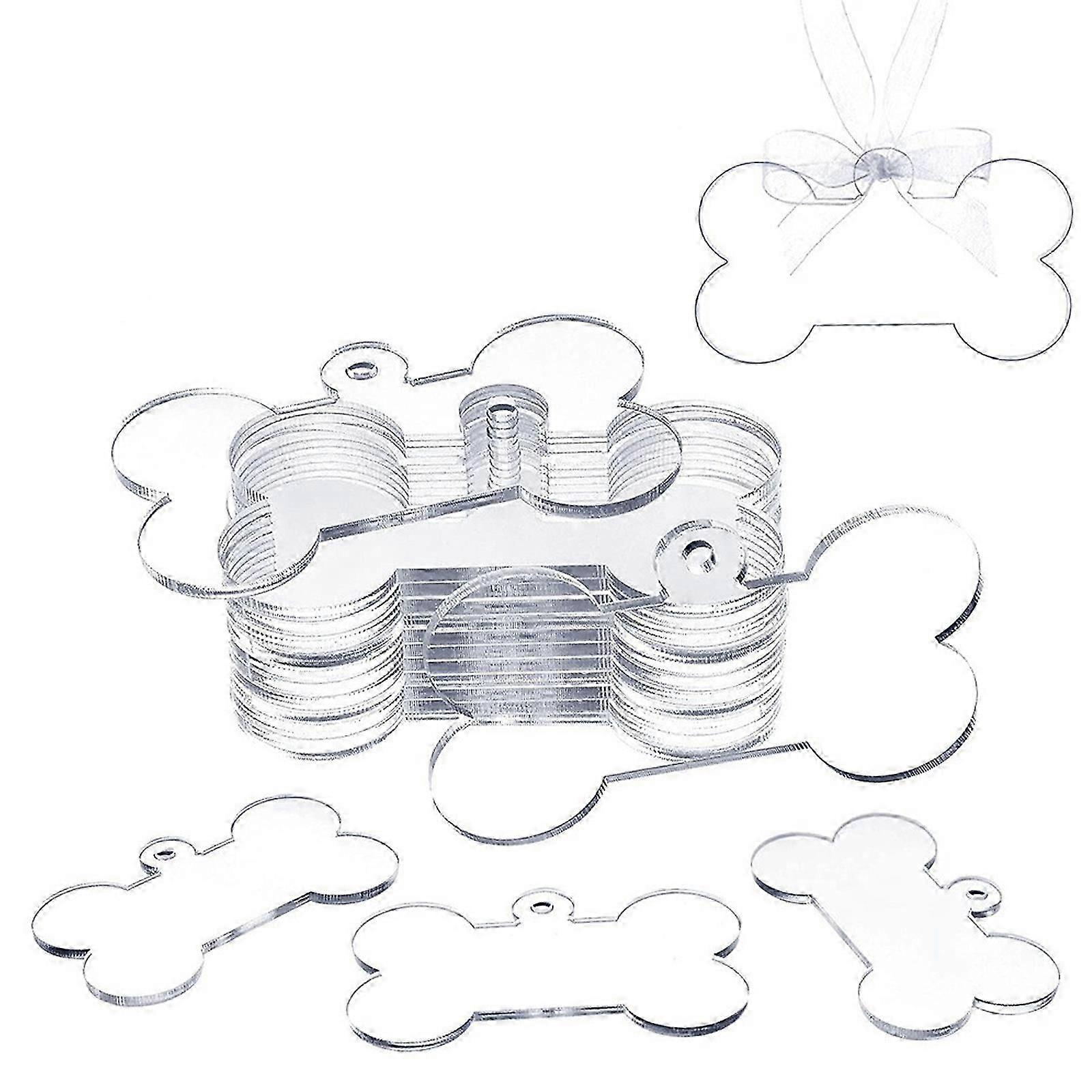 Pet ID Tags, Bone Shaped Acrylic Charms For Christmas Ornaments, Transparent Crystal Clear Double Sided Engraving Diy Craft Applications, 20Pcs