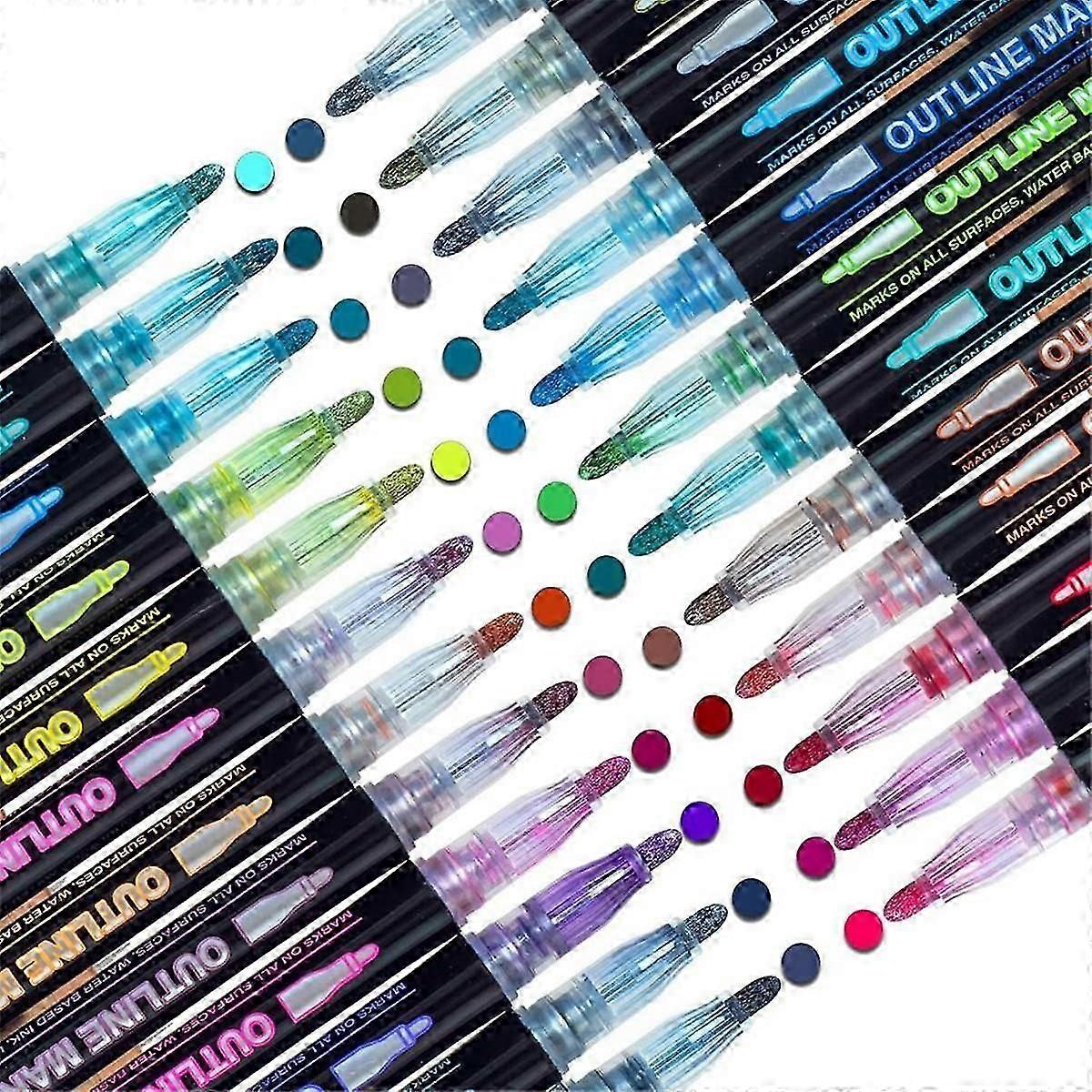 Shimmer Markers Doodle Outline Dazzles: 24 Colors Metallic Double Line Glitter Pens Set Super Squiggles Sparkle Dazzlers
