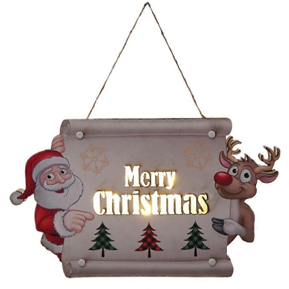Wooden Hanging Sign Christmas Door Sign Welcome Sign Decorations with Lights