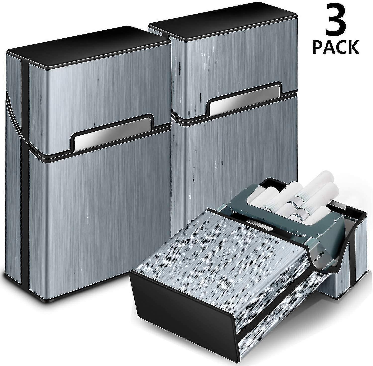 Cigarette Case, 3 Pieces Metal Cigarette Box With Magnetic Closure, Aluminum Cigarette Case, Reinforced Plastic Housing & Snap-in Function