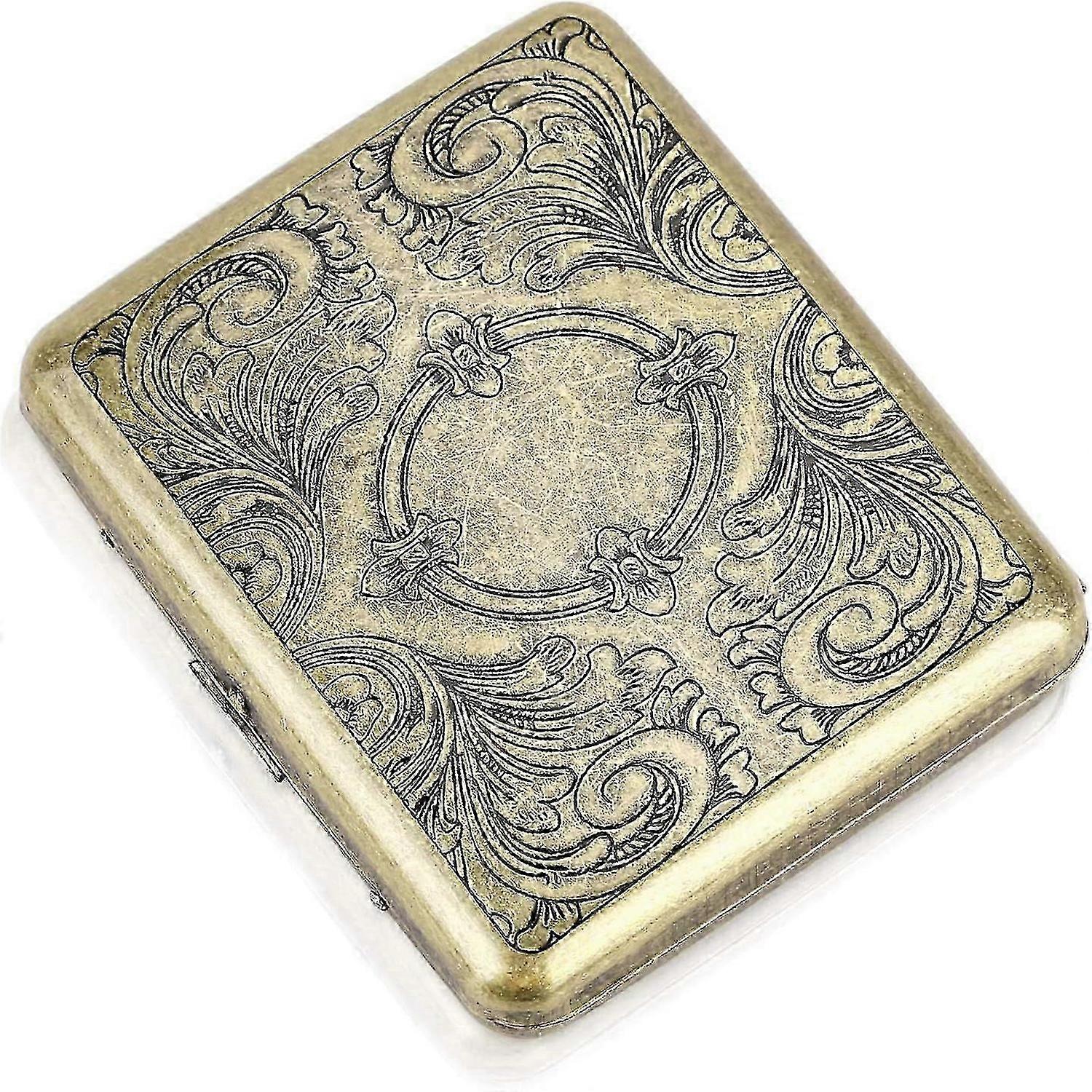 Vintage Bronze Cigarette Case Holds 20,Flower Golden(Flower)