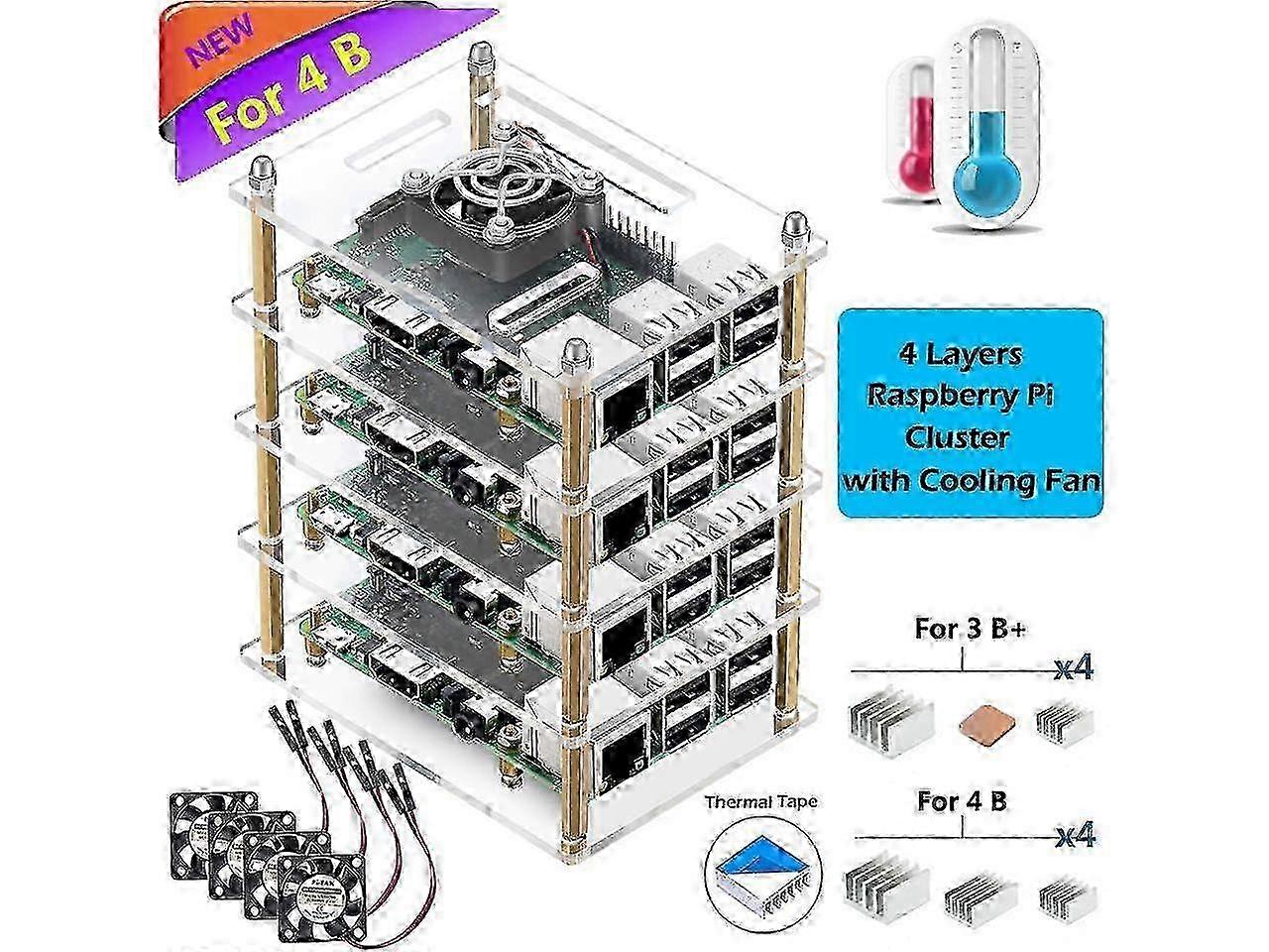 Features: Complete Stackable Clear Acrylic Case Kit for Up To Four Layers Compatible With Current Raspberry Pi's including Pi 4 B, 3 Band, Pi 3 B, Pi 2 B, Pi Band Our iUniker Raspberry Pi Case is open on all sides with each acrylic layer containing a built in air vent to allow for maximum air flow for each Raspberry Pi With Quiet Cooling Fan, it can drop the temps for your Pi Include Raspberry Pi Heatsink, Better Cooling Experience Package Include: 1x 4-Layer Raspberry Pi Case 4x Cooling Fan 4x Raspberry Pi Heatsink Kit 4x Screw Set Note: Due to the light and screen setting difference, the item's color may be slightly different from the pictures. Please allow slight dimension difference due to different manual measurement. Sold by-Dadangjia