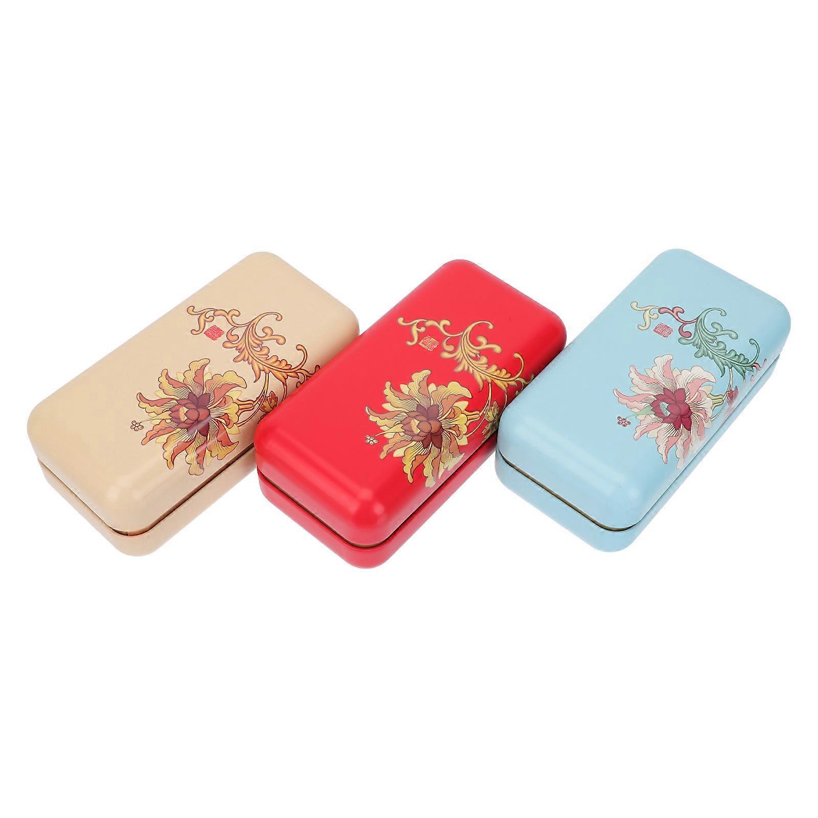 Tea Tins Organizer Sealed Square Shape Tinplate Home Decoration Assorted Color 3Pcs
